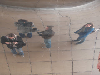 Those two pictures are from my adventure downtown when Ryan, Aaron and Leah were here. The first is of us in the Bean and the second is of the most amazing statue I have ever seen. It's a traveling statue of American Gothic (obviously), but it is so ginormous. I'm only as tall as the suitcase!!! I made them venture with me down Michigan Ave so I could get documentation of it before it goes away. I'll probably go downtown at night sometime to get some awesome night shots of it. I don't know why I love it so much. I was never a huge fan of the painting. I just find this statue so fascinating. Here's a better picture that I "borrowed" off someones flickr.